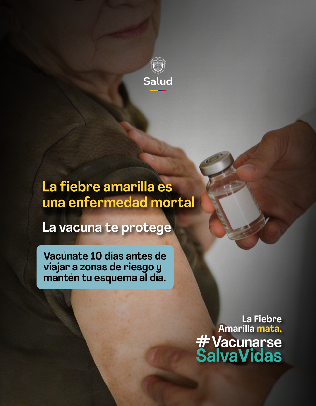 La fiebre amarilla es una enfermedad que puede prevenirse y la vacuna es la herramienta más poderosa para hacerlo. Vacunarte es un acto de protección para ti y para quienes te rodean. En Colombia, la vacuna está disponible de forma gratuita y puede aplicarse en múltiples puntos de vacunación en todo el país. Si vives, trabajas o planeas viajar a zonas de riesgo, no esperes: infórmate, consulta el punto de vacunación más cercano y vacúnate a tiempo. Una sola dosis puede marcar la diferencia entre el riesgo y la protección.