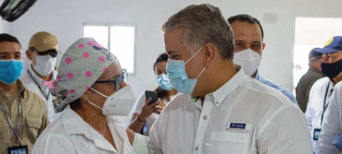 El presidente Duque sostuvo que "hoy empieza un proceso en el departamento, el cual queremos que sea ágil, acelerado y crezca exponencial ente. Se está evaluando la capacidad, cadena de frío, personal y ruta de vacunación. Nos complace ver empezarlo".